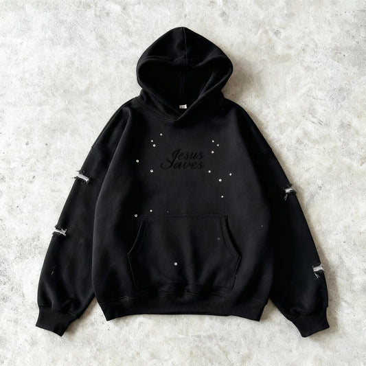 STITCHED CROSS - CRYSTAL HOODIE